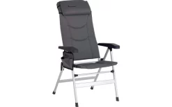 Der Klappstuhl „Thor“ ist ein gepolsterter Komfort-Campingstuhl mit serienmäßigem Kopfteil. Die Rückenlehne lässt sich 8-fach verstellen und das Kopfpolster lässt sich frei in der Höhe verschieben oder auch komplett abnehmen. Der Bezug ist schmutz- und wasserabweisend.