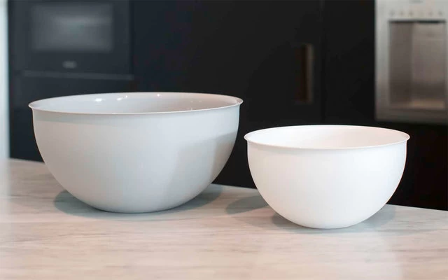 Der durchdachten Schüsselform liegt ein Kugelabschnitt zugrunde. Damit sie nicht einfach wegrollt, hat der Boden eine Innenwölbung für absolutes Stehvermögen. Besonders praktisch ist die Rundum-Gießkante für Schütten ohne Kleckern. Die PALSBY Schüssel wird aus dem neuen koziol Organic Material mit natürlicher Zellulose hergestellt: umweltfreundlich, lebensmittelecht, 100% recycelbar, absolut schadstofffrei, ohne Formaldehyd oder BPA. Dazu ist es extrem langlebig, robust und natürlich spülmaschinenfest. Die Herstellung in Deutschland ermöglicht zudem eine aktive Reduktion von CO² durch kurze Transportwege und den Einsatz von Ökostrom.