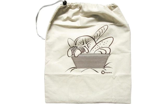 Der wiederverwendbare, „klimatisierte Brotbeutel“ aus atmungsaktiver Baumwolle, Futter aus Polyethylen.