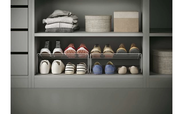 Cipok-2 Schrankeinsatz weiss. 2 Schrankeinsätze für 8 Paar Schuhe. Aus plastifiziertem Draht.
