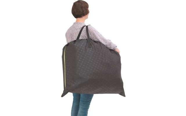 – Strapazierfähiger, zweifarbiger Bezug mit PU-Beschichtung, einem UV-Schutzfaktor von über 30 und einer Wassersäule von 850 mm