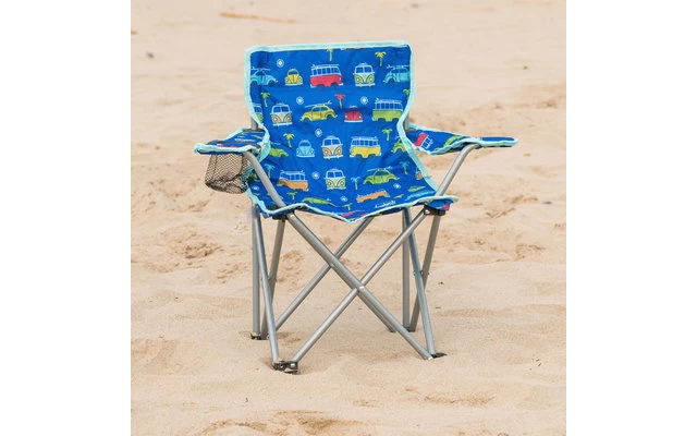 Faltbarer Campingstuhl für Kinder mit süßem VW Bus & VW Käfer Design. Das Motiv ist in Pink oder Blau gehalten und mit bunten Bullis & Käfern bedruckt. Der Campingstuhl ist besonders langlebig durch seinen robusten Rohr-Stahlrahmen. In einer der beiden Armlehnen ist ein Getränkehalter integriert. Der VW Bulli Stuhl kommt mit einer Tragetasche. Der Stuhl ist bis zu 50 kg belastbar. Maße: 35 x 53 x 35 cm Maße verpackt: 10 x 53 x 10 cm.