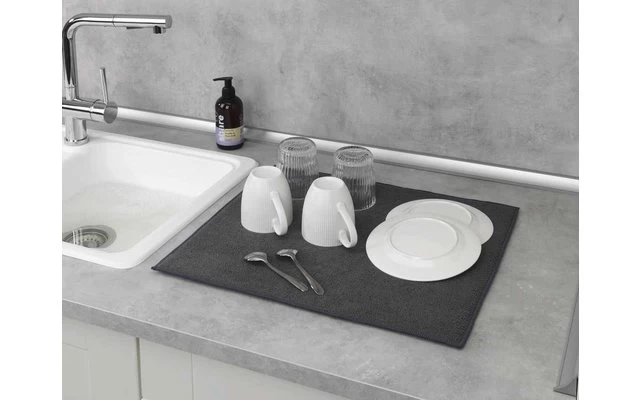 Legen Sie nach dem Abwasch einfach das nasse Geschirr auf Ihre neue Matte. Die saugfähige Mikrofaser nimmt das Wasser auf.