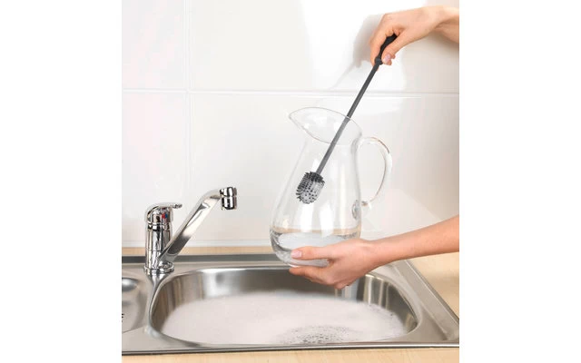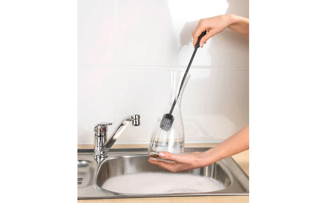 Durch den kleinen Kopf ist die Reinigungsbürste besonders zum Spülen von Flaschen, Kannen, Vasen und Karaffen. Selbst schwer erreichbare Stellen, beispielsweise in schmalen Trinkflaschen, reinigt die Bürste mit Noppen gründlich.